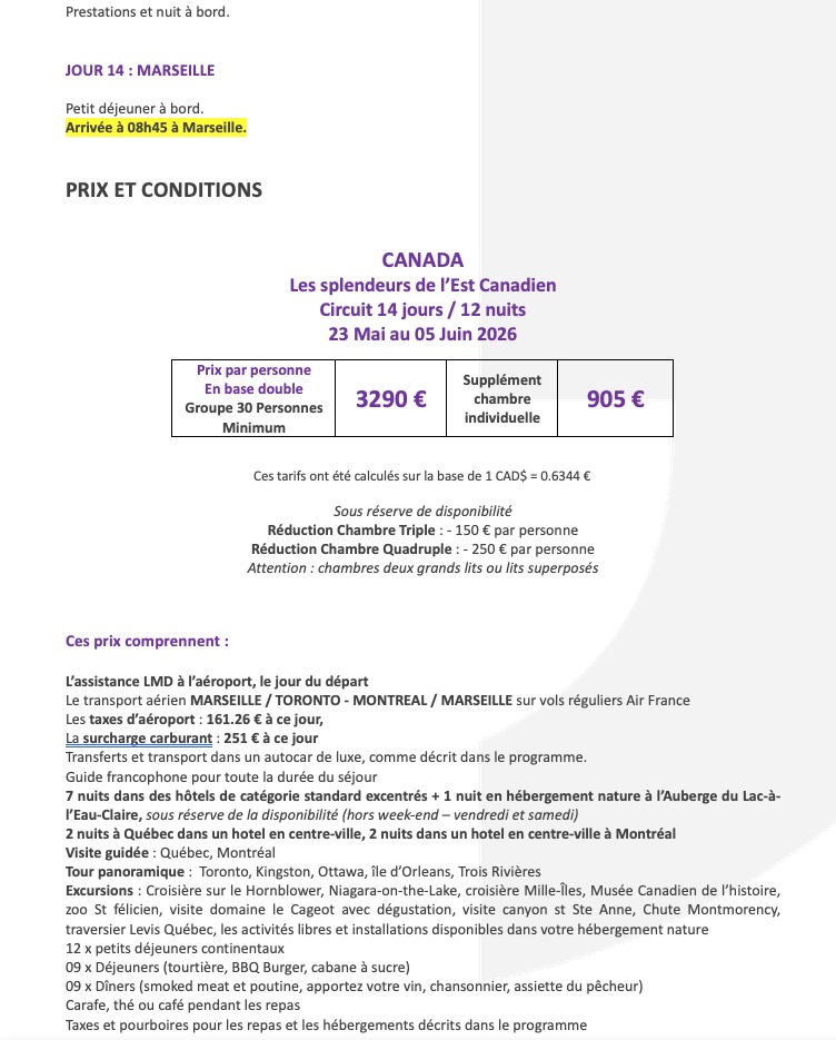 Programme SALSAVANILLE CANADA – 14J12N – 23 MAI 2026
